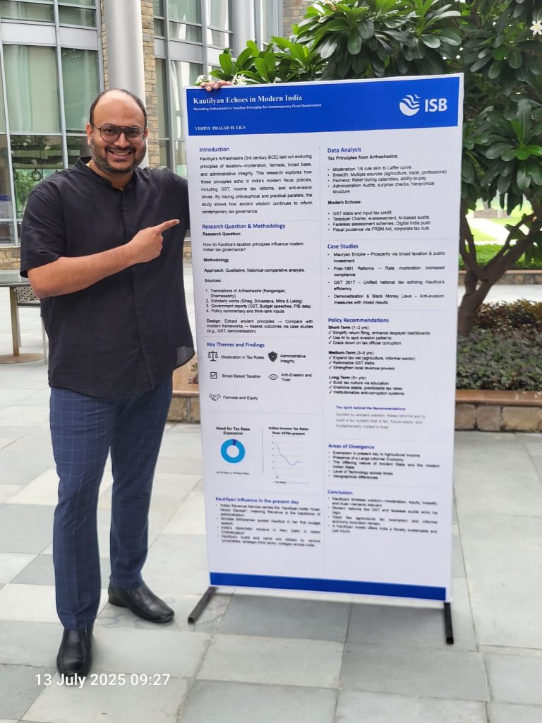 At the recent ISB Capstone Poster Walk, I had the opportunity to present a project that brought together two worlds I’ve long lived in — the study of history and the practice of taxation. Titled “Kautilyan Echoes in Modern India: Revisiting Arthashastra’s Taxation Principles for Contemporary Fiscal Governance”, this capstone represents a deeply personal intellectual journey that unites my postgraduate academic training in history with my professional life as an officer of the Indian Revenue Service.